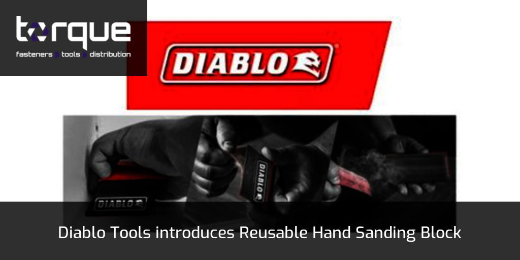 Diablo Tools has introduced their new reusable angled hand sanding block. With a dual-sided body design, the reusable angled block features both a cushioned foam side for contour sanding and a dense foam side for flat sanding and is designed to fit the exclusive Diablo SandNET™ sanding sheets – the only reusable sanding sheets on the market today.