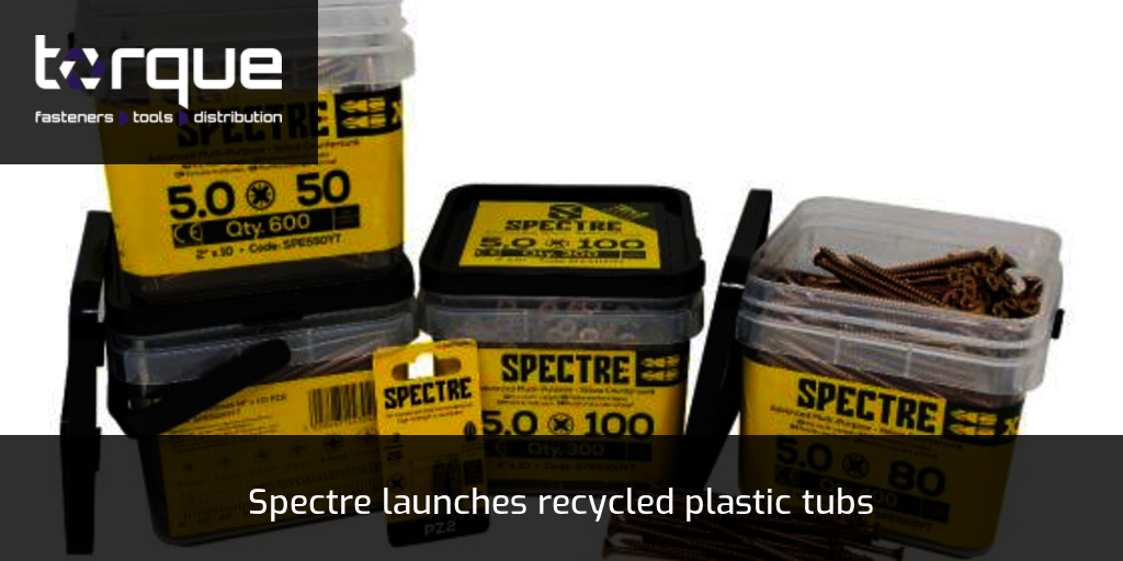 The reusable tubs, crammed with Spectre’s Advanced Wood Screws, are made from 30% recyclable plastic and come in quantities of 300, 450, 600, 900, 1200 and 1400. Each tub also comes with a pack of two Spectre screwdriver bits.