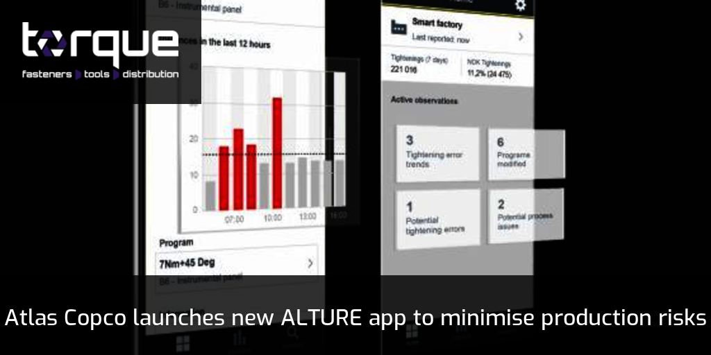 The ALTURE app (ALTernate FutURE) will use raw data captured from smart tooling and integrated controllers. ALTURE analyses this using AI and an algorithm in the app. Managers will then be provided with real-time line performance notifications, as well as any ‘Not OK’ (NOK) tightening trends and recommendations for process improvement. Feedback from over fifty of Atlas Copco’s global customers during a 12-month trial confirmed that the smartphone app was the simplest and fastest means of delivering real-time information, enabling personnel on the shop floor to counterstrike any emerging issues.