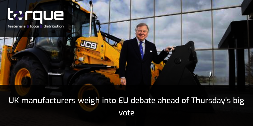 Bosses of UK manufacturers have made their case for remain or leaving, including the Chairman of JCB, Lord Bamford, and Sir James Dyson (founder of Dyson) in favour of leaving, while the Chairman of James Cropper - the listed specialist paper, moulded fibre and advanced materials group - is among those in favour of remain.